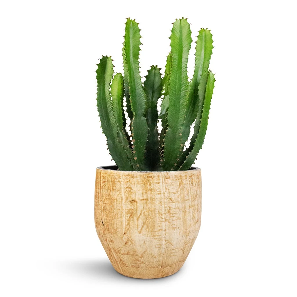 Please note: The skin of Euphorbia triangularis can scratch, but their resilient nature allows them to scar over swiftly, enhancing its rugged charm.